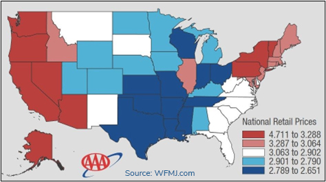 Gasoline prices in the United States follow a predictable seasonal cycle, with the lowest prices typically occurring in the winter months and rising through the spring as driving demand increases and refineries conduct scheduled maintenance. Since fuel demand is lowest early in the year, refineries often reduce output temporarily for turnarounds which can tighten supply just as motorists begin to drive more, placing upward pressure on retail prices each spring.