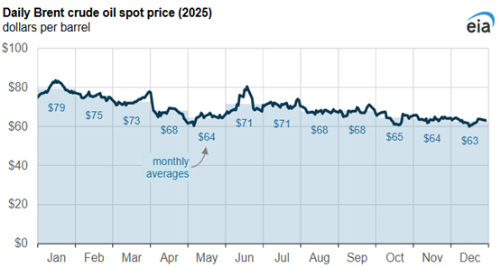 The 2025 petroleum market faced price declines, driven by global oversupply and weak demand. OPEC+ rolled back production cuts, increasing supply in the market, while geopolitical tensions—sanctions on Russia and Iran, U.S. blockades on Venezuelan oil, and Middle East flare-ups—caused brief volatility. Despite these shocks, Brent crude fell about 18% for the year, marking its sharpest drop since 2020.