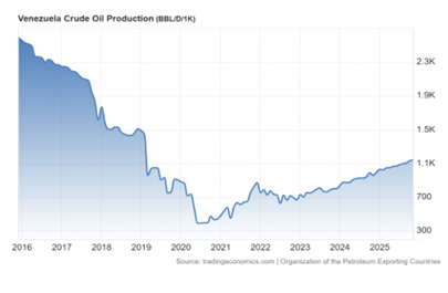 2026 petroleum market is beginning the year under a mix of heavy supply and elevated geopolitical risk. Global oil production remains robust, keeping Brent crude near the $60 per barrel level, but volatility has increased sharply as geopolitical tensions intensify. The U.S. capture of Venezuelan leader Nicolás Maduro has injected uncertainty into future Venezuelan oil flows, raising questions about sanctions,governance, and the potential reentry of one of the world’s largest crude reserves into global markets. At the same time, aggressive U.S. enforcement actions against sanctioned tankers—particularly those linked to Russia and Iran—have added risk.